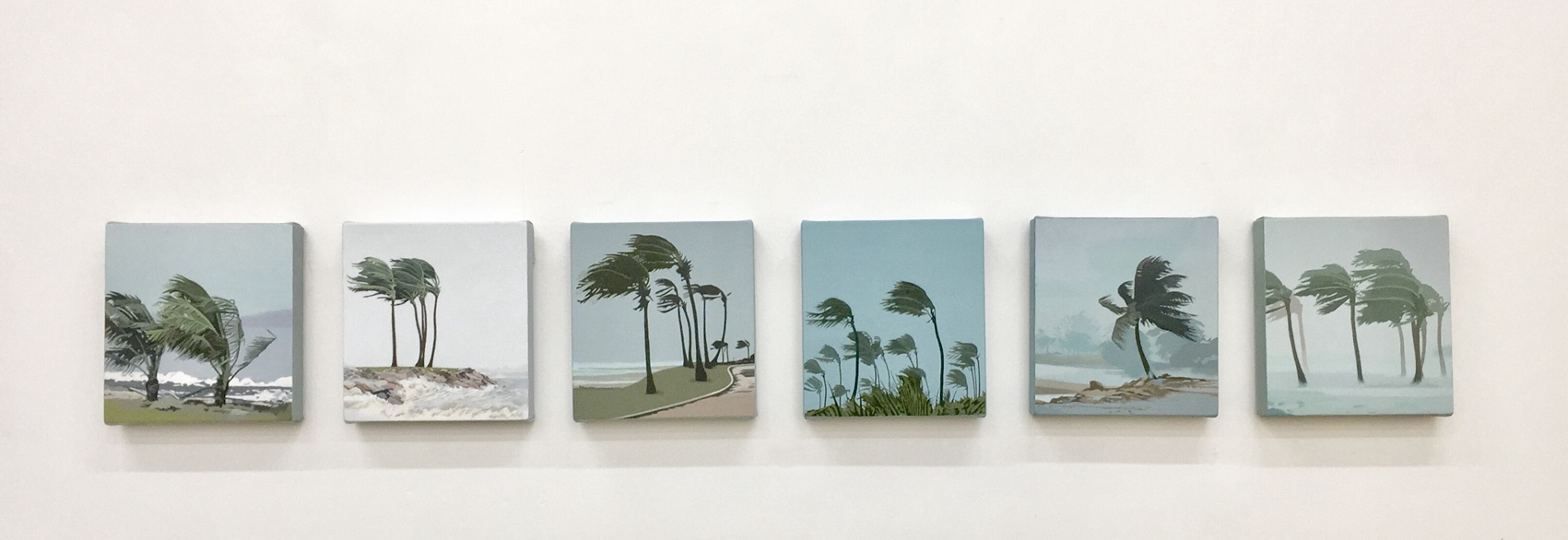 The “Indian Ocean Series – Empty Ocean Pages” is based on six map pages from the 1996 Perth UBD which are empty but for ocean. A breaking wave off City Beach fills the empty ocean pages in INDIAN OCEAN – WAVE. The area surrounding the six pages is a painting of the blue map squares, in a mix of phthalo cerulean blue, black and white, the proportions of which changed slightly at each sitting accounting for the colour variations across the painting.